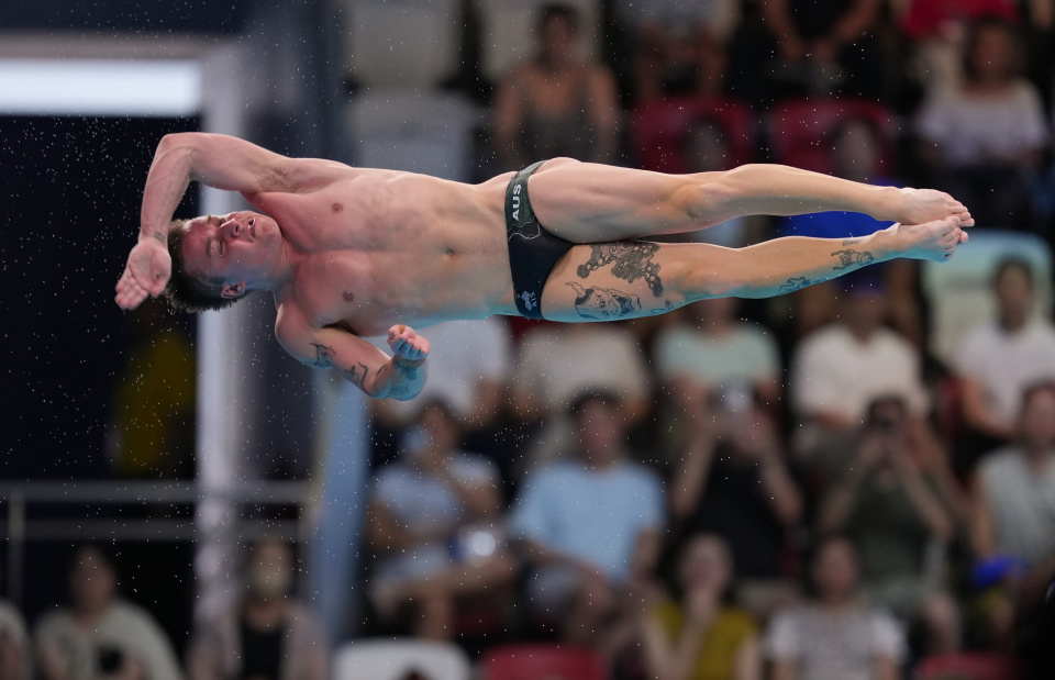 8月3日,澳大利亚选手鲁索在比赛中。最终,他获得冠军。新华社记者 伍志尊 摄